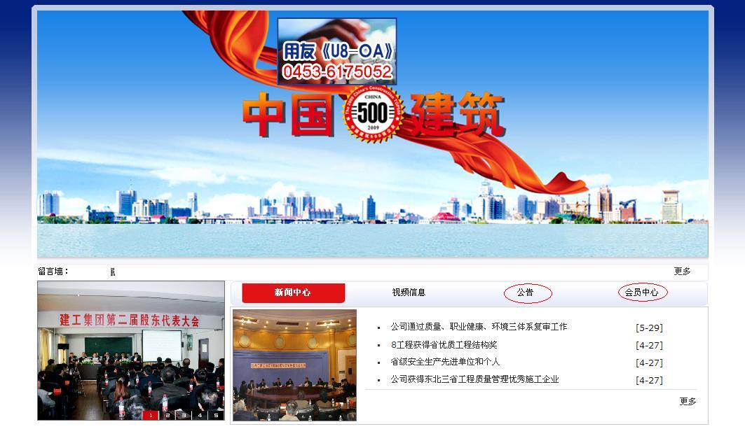 4、網(wǎng)站主頁上還有一個重要功能是內(nèi)部管理網(wǎng)。在主頁上點擊滑動塊,即可進入用友《U8-OA》內(nèi)網(wǎng);