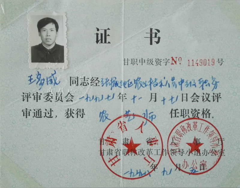 農(nóng)藝師合格證書
